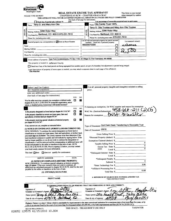 | 5 | 02/05/1996 | QCD | Quit Claim Deed | PORT TOWNSEND BUSINESS PA | GRABLE, ROBERT/IRENE | 0 | 0 | $0.00 | 78826 | 0 |