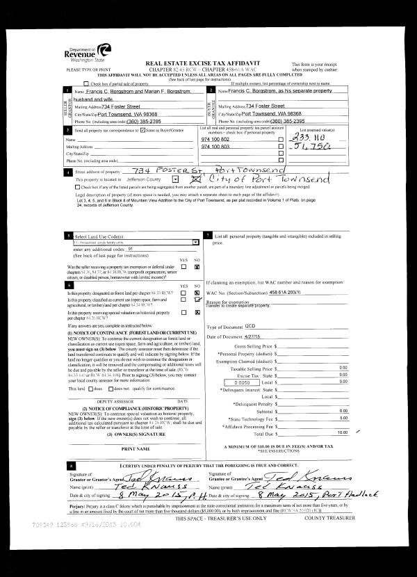 | Mailing Address: | EDWARD T HERBERT 1510 HASTINGS AVE PORT TOWNSEND, WA 98368-5912 | % Ownership: | 100.0000000000% |