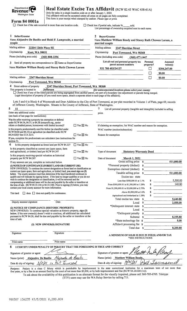 | 2 | 04/04/2001 | SWD | Statutory Warranty Deed | KLINKER, E J DBA OLYMPIC | SAFE HARBOR EXCHANGE CORPORATI | 0 | 0 | $111,000.00 | 91986 | 0 |