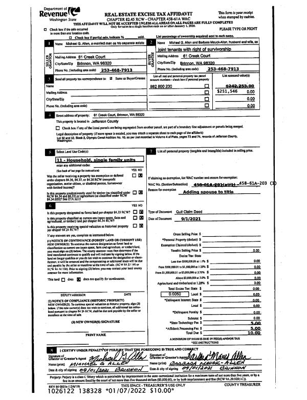 | 1 | 02/25/2013 | QCD | Quit Claim Deed | | | | | | 118910 | |