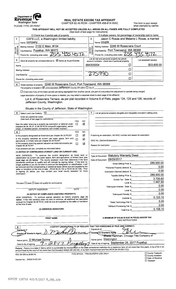 | 2 | 08/06/2019 | SWD | Statutory Warranty Deed | RUSSELL E & AIMMEE B SHIPLET | SHIRLEY K & DAVID P TEA | | | $335,000.00 | 132963 | |