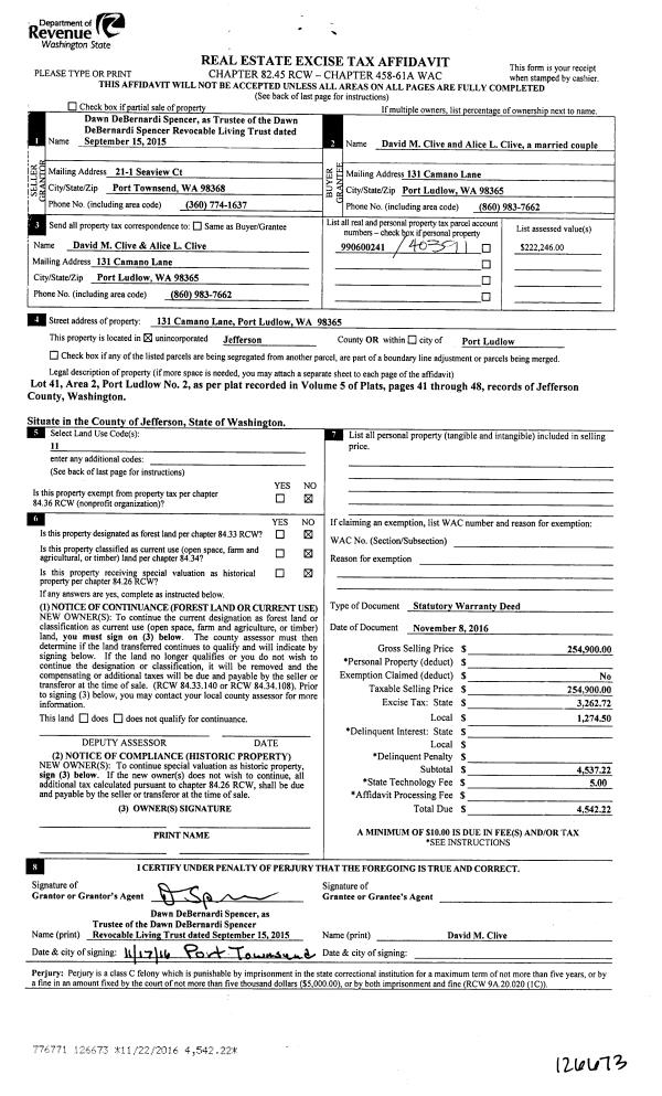 | Mailing Address: | 181 N BAY LN UNIT 2 PORT LUDLOW, WA 98365-8223 | % Ownership: | 100.0000000000% |