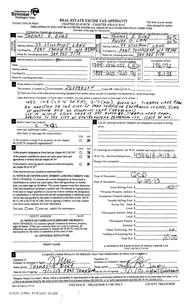 | Property ID: | 39807 | Abbreviated Legal Description: | PORT LUDLOW CONDOMINIUM #2 UNIT #906 |
