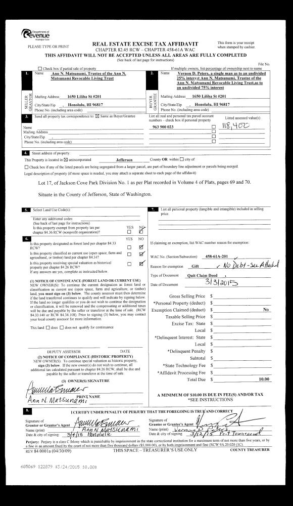 | 3 | 12/17/1991 | SWD | Statutory Warranty Deed | JACKSON, JAMES K/MARILYN | WEBBER, SHARIL | 0 | 0 | $145,000.00 | 67434 | 0 |
