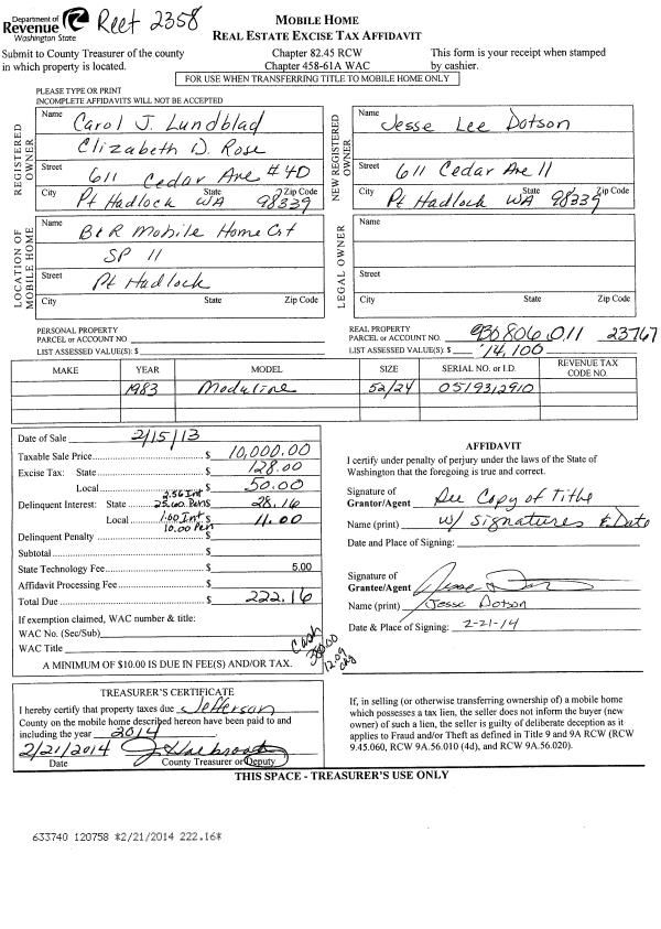 | Property ID: | 39878 | Abbreviated Legal Description: | PORT LUDLOW #1 AREA1 3 |