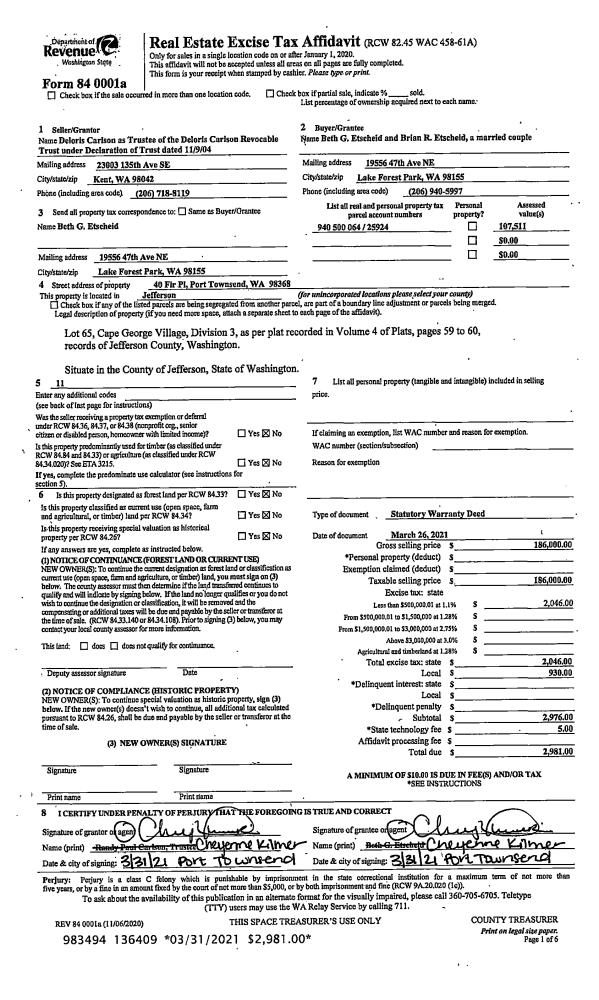 | 2 | 01/04/2021 | SWD | Statutory Warranty Deed | JOHN B HEIDERICH | LIVING STONE CUSTOM HOMES LLC | | | $60,000.00 | 135920 | |