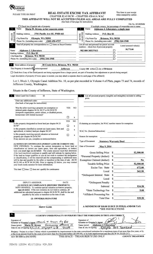 | 4 | 03/07/2017 | SWD | Statutory Warranty Deed | KENNETH F SANFORD TRUSTEE | KAREN A CAVIN | | | $518,500.00 | 127296 | |