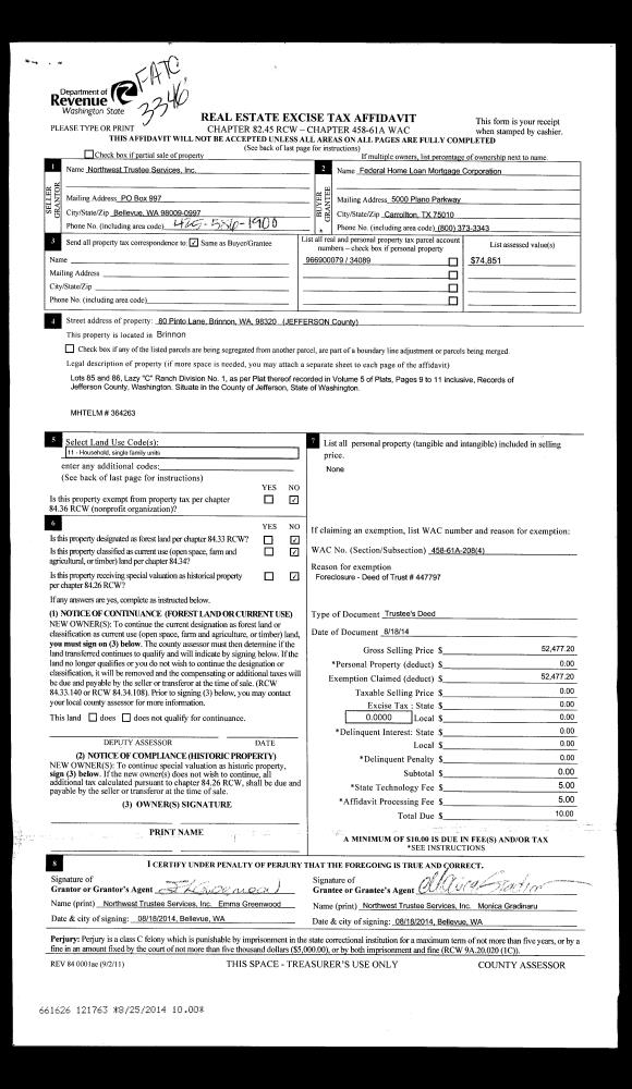 | 3 | 04/24/2015 | SPWD | Special Warranty Deed | JOHN JR & SHARON RESEK JOINT LIVING TRUST | REVERSE MORTGAGE SOLUTIONS INC | | | | 123076 | |