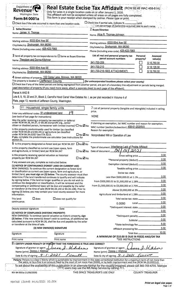 | 3 | 06/06/2000 | SWD | Statutory Warranty Deed | KERL, PETER C/CATHERINE L | NICHOLS, JAMES ALAN | 0 | 0 | $11,500.00 | 89861 | 0 |