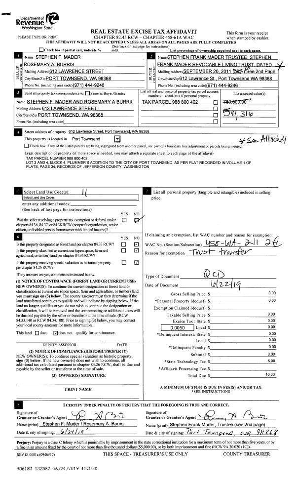 | 4 | 06/23/2005 | SWD | Statutory Warranty Deed | FRAZER, PEGGY A | ROESLER, WILLIAM/FORTUN, JILL | | | $197,500.00 | 104121 | 0 |
