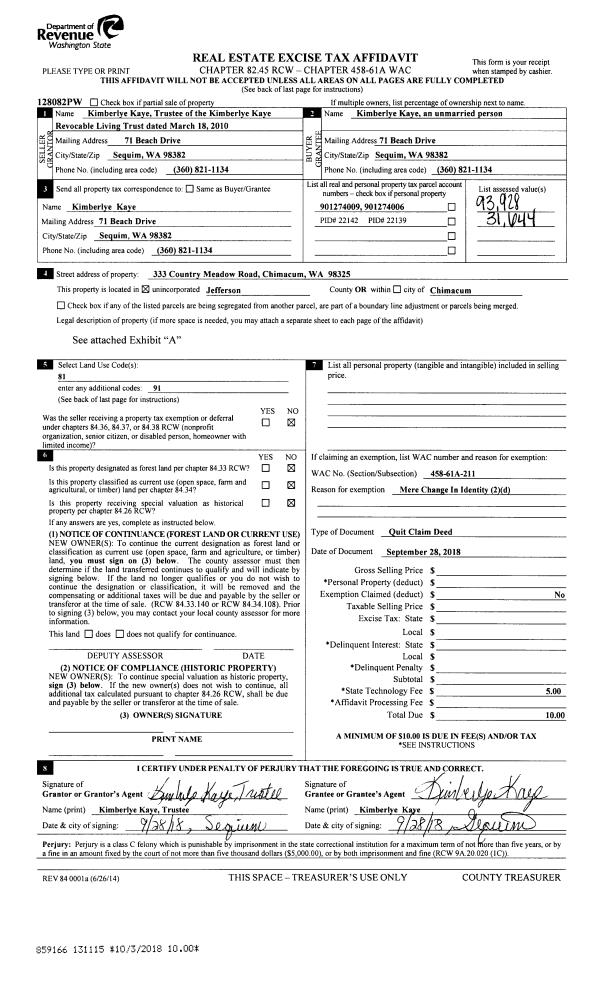 | 5 | 03/16/2000 | QCD | Quit Claim Deed | WHITELEY,WILLIAM/JR & VIR | WHITELEY TRUST AGREEMENT | 0 | 0 | $0.00 | 89156 | 0 |