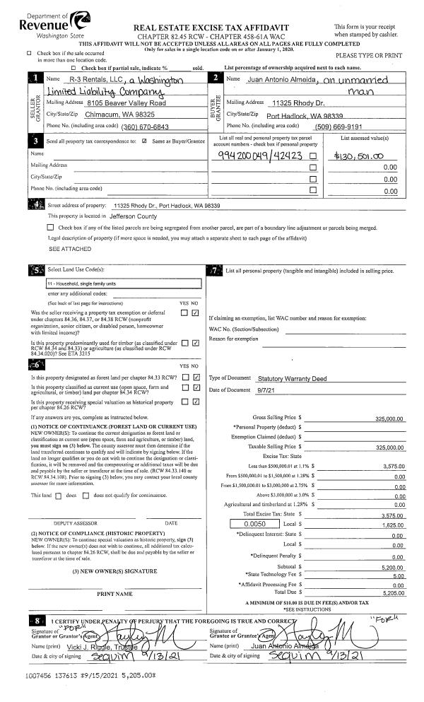 | Mailing Address: | 271 RAINIER LN PORT LUDLOW, WA 98365-9652 | % Ownership: | 100.0000000000% |