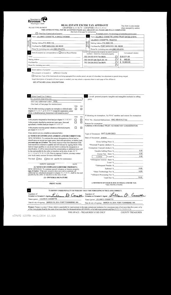 | 4 | 09/18/1998 | QCD | Quit Claim Deed | SWETTENAM, THOMAS G/CHERY | SWETTENAM, THOMAS & CHERYL/TR | 0 | 0 | $0.00 | 86691 | 0 |