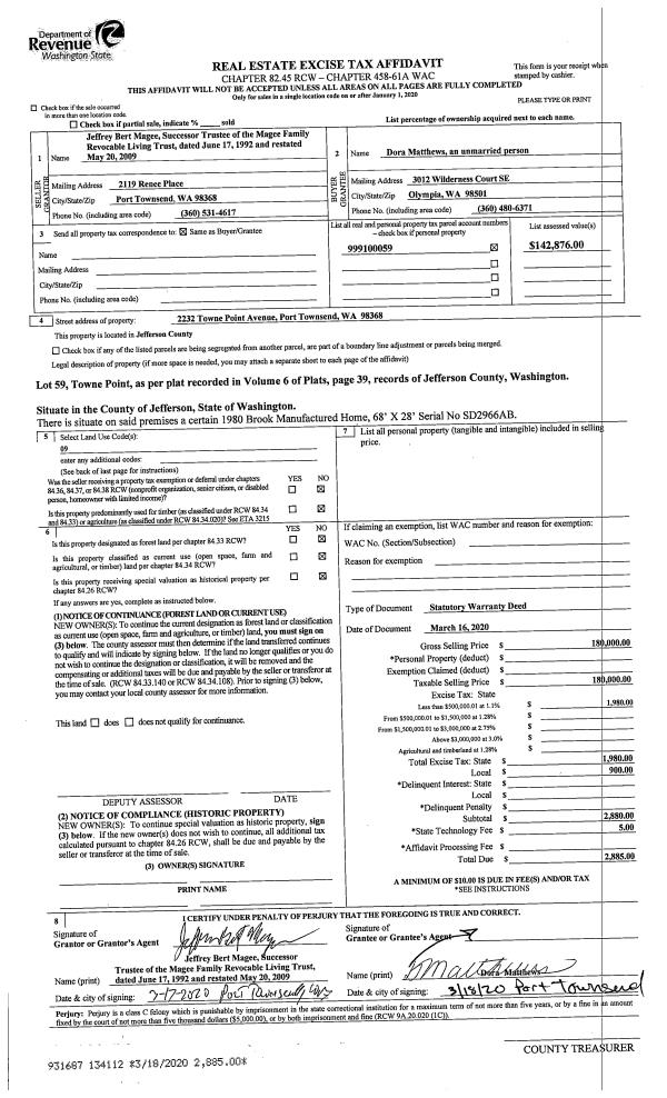 | Property ID: | 40194 | Abbreviated Legal Description: | PORT LUDLOW NO. 1 AREA 5, LOT 27 |