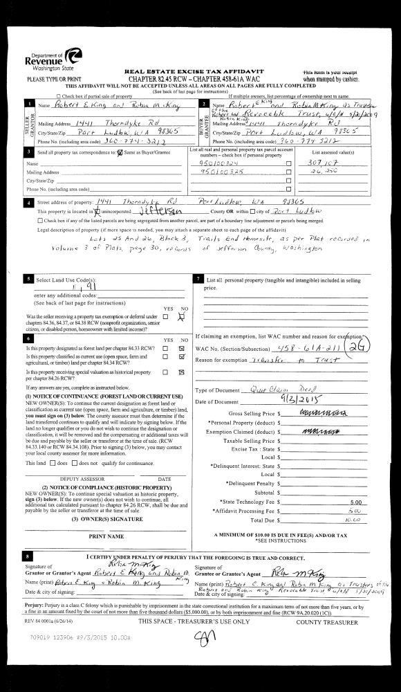 | 2 | 03/02/2004 | SWD | Statutory Warranty Deed | HASSELL, HUGH/JUDITH | PORT LUDLOW ASSOCIATES | 0 | 0 | $9,900.00 | 99762 | 0 |
