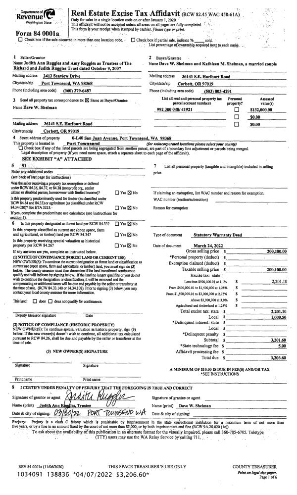 | 1 | 08/09/2022 | SWD | Statutory Warranty Deed | ALAN E ROSS MARITAL TRUST | LATHROP & FRANCES DOUGLASS | | | $90,000.00 | 139625 | |