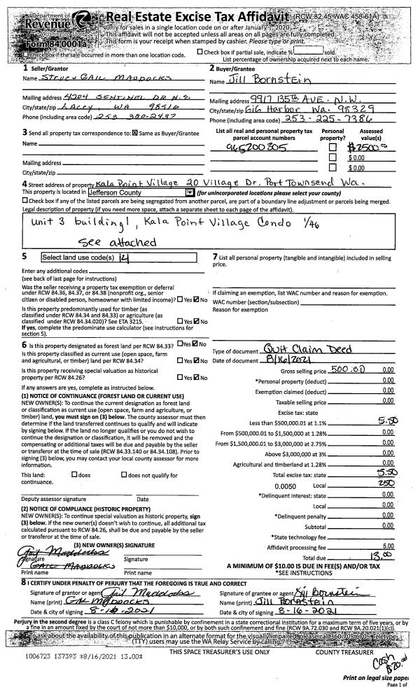 | Mailing Address: | 55 FALCON LN PORT LUDLOW, WA 98365-9746 | % Ownership: | 100.0000000000% |