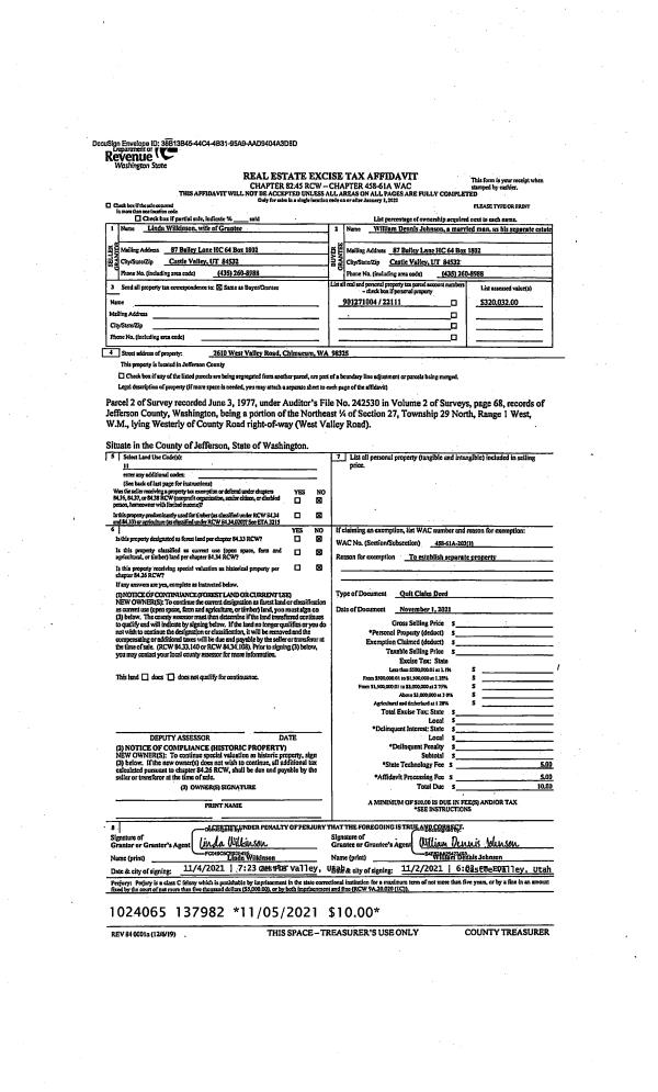 | Mailing Address: | 111 WARBLER LN PORT LUDLOW, WA 98365-8703 | % Ownership: | 100.0000000000% |