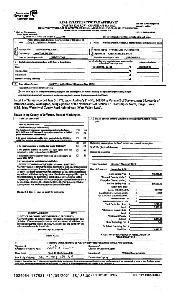 | 1 | 02/21/2023 | SWD | Statutory Warranty Deed | DOUGLAS A & CYNTHIA A CRUMLEY | MARK A & MARJORIE E KLUTH | | | $600,000.00 | 140529 | |