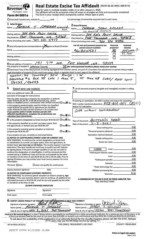| 2 | 07/18/2005 | QCD | Quit Claim Deed | GJORDING, PAUL M | DAHL, MARILYN F | | | $0.00 | 104233 | 0 |