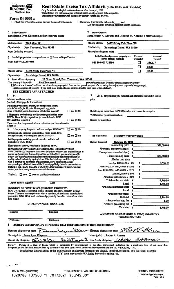 | 1 | 08/07/2018 | SWD | Statutory Warranty Deed | KIM A NELSON | TOYOKO TSUKUDA & DALE L DOERING | | | $315,000.00 | 130746 | |