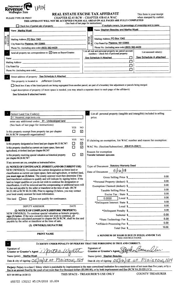 | 1 | 08/01/2018 | SWD | Statutory Warranty Deed | PRISCILLA JENSEN | WILLIAM J & JENNIFER M TOWNER | | | $285,000.00 | 130737 | |