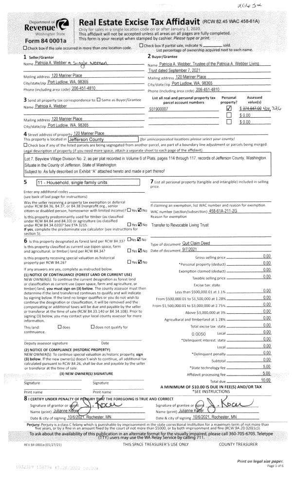 | Mailing Address: | ANTOINETTE M. QUESADA 63 BALDWIN LANE PORT LUDLOW, WA 98365 | % Ownership: | 100.0000000000% |