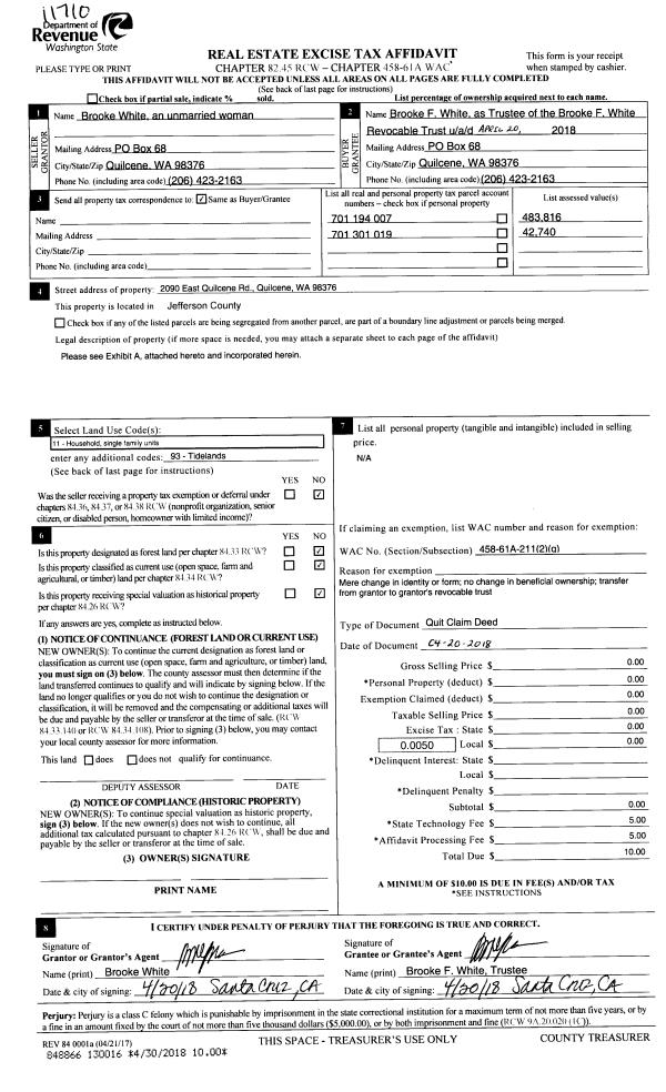 | 3 | 10/16/2018 | SWD | Statutory Warranty Deed | ALCALA 2010 LIVING TRUST | MELVIN R SMITH | | | $55,000.00 | 131240 | |