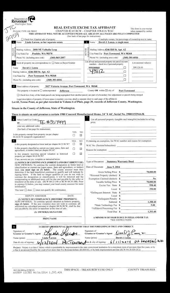 | Property ID: | 40320 | Abbreviated Legal Description: | PORT LUDLOW NO 2 AREA 1 LOT 33 |