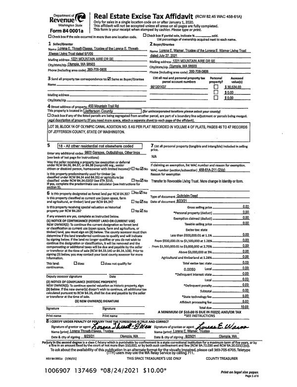 | 3 | 05/13/2021 | SWD | Statutory Warranty Deed | BRADLEY & KATHLEEN THUSTON | DINAH K ALDRICH | | | $486,250.00 | 136783 | |
