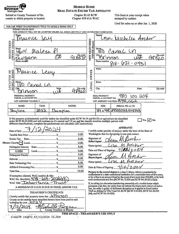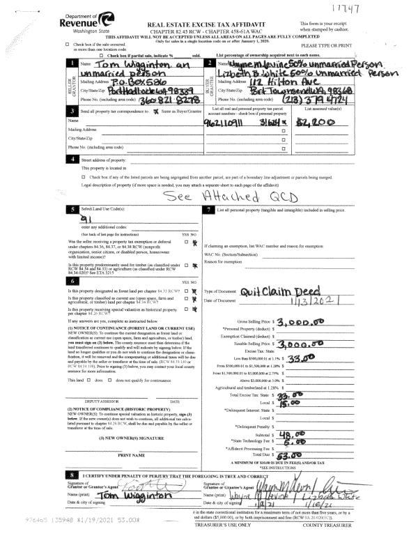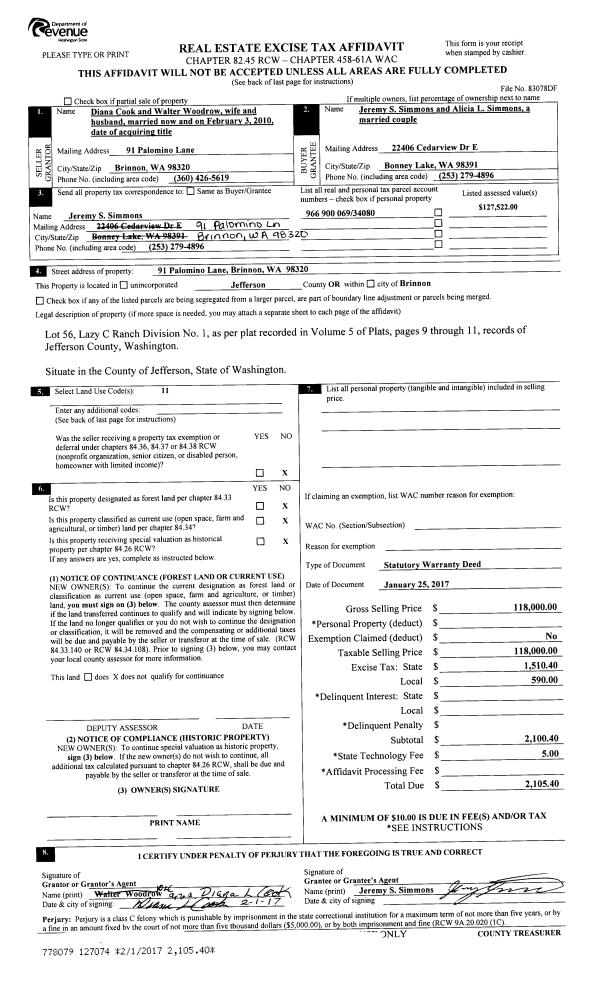 | 7 | 01/05/2004 | SWD | Statutory Warranty Deed | CUSHMAN, KAREN W TRUSTEE | PORT LUDLOW ASSOCIATES LLC | 0 | 0 | $16,500.00 | 99467 | 0 |