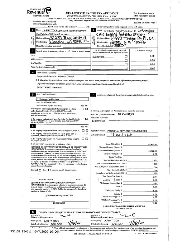 | 4 | 04/26/2004 | SWD | Statutory Warranty Deed | PATTERSON FAMILY TRUST | HAROLD MOE CONSTRUCTION INC | 0 | 0 | $16,500.00 | 100108 | 0 |