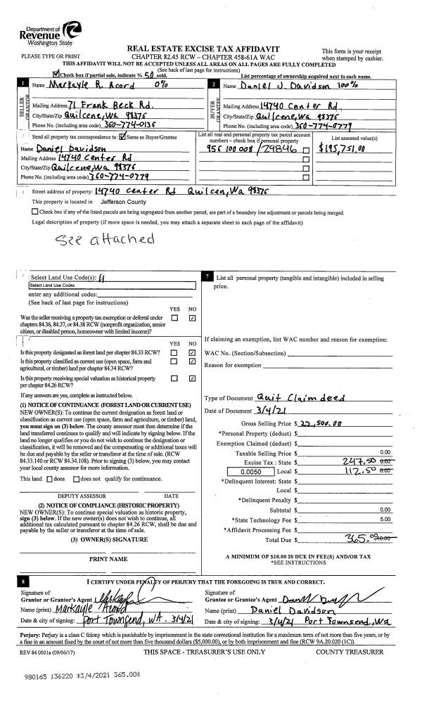 | Mailing Address: | 90 WHEELER LN PORT LUDLOW, WA 98365-9631 | % Ownership: | 100.0000000000% |