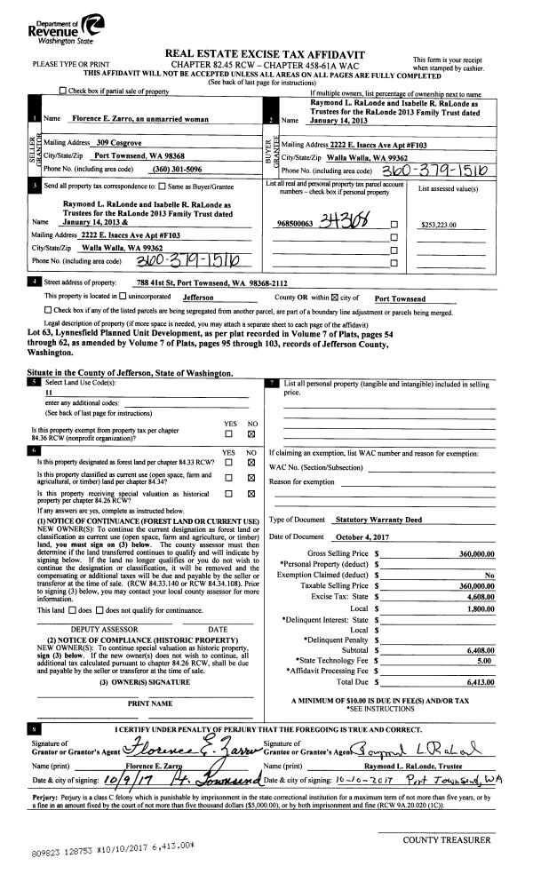 | 4 | 05/02/2017 | SWD | Statutory Warranty Deed | JERROLD H JOHNSON | CARY M & NICOLE J CASAL | | | $50,000.00 | 127606 | |