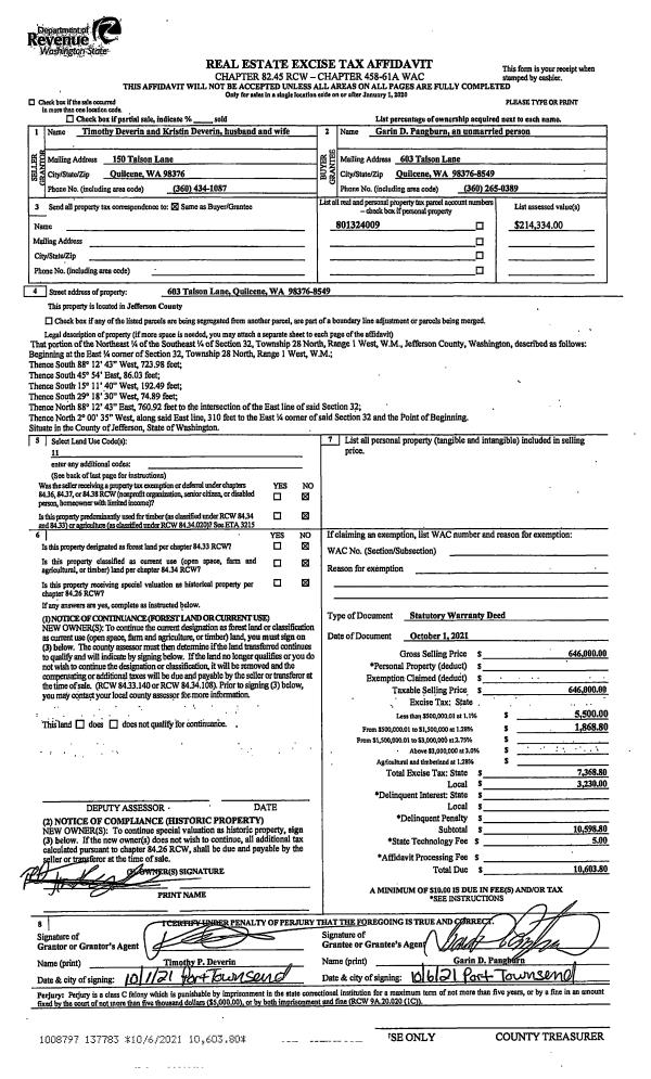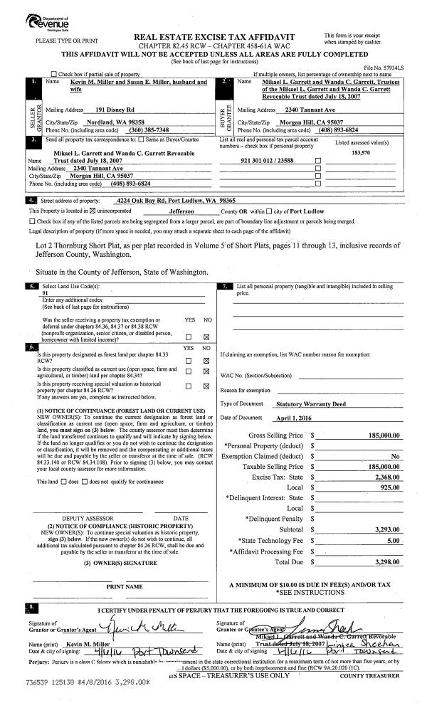 | Mailing Address: | 121 WHEELER LN PORT LUDLOW, WA 98365-9631 | % Ownership: | 100.0000000000% |