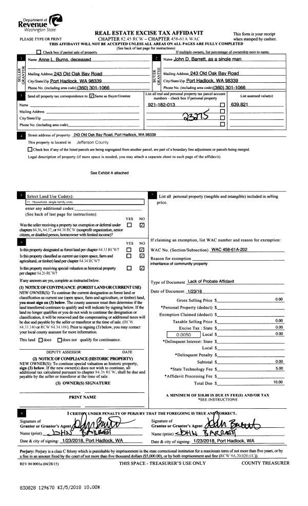 | 1 | 01/18/2019 | SWD | Statutory Warranty Deed | PETER K & BETH D ELY | MICHAEL J & DIANA M SCHEFTIC | | | $347,000.00 | 131753 | |