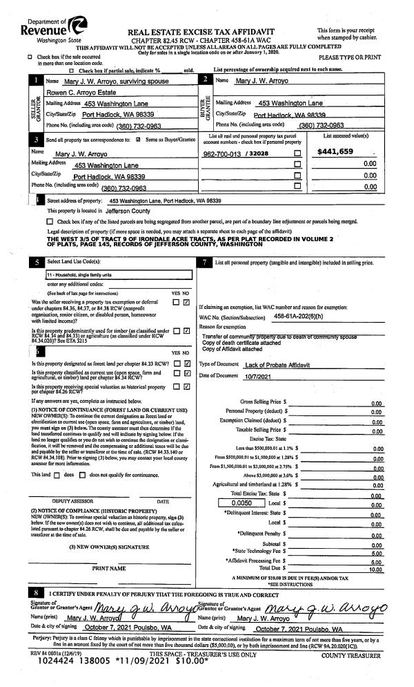 | Mailing Address: | DOREEN E FILLERS 110 JACKSON LN PORT LUDLOW, WA 98365-9609 | % Ownership: | 100.0000000000% |