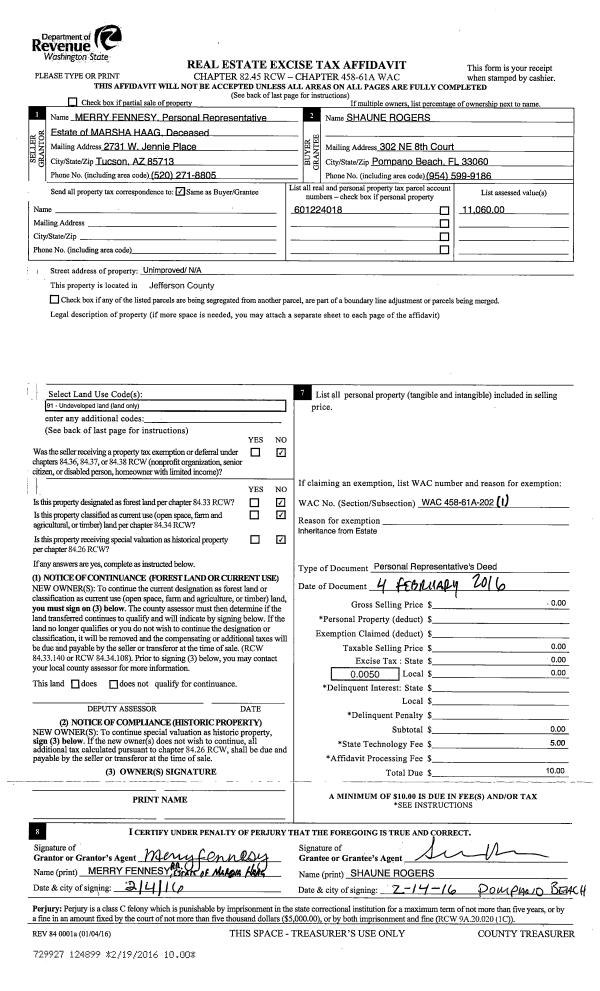 | 1 | 10/24/2016 | SWD | Statutory Warranty Deed | DARCY R GARNEAU | JOHN W ERICKSON | | | $70,800.00 | 126518 | |