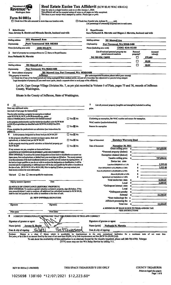 | 1 | 10/18/2023 | SWD | Statutory Warranty Deed | CULLEN P HART TRUSTEE | SARAH L BALDWIN | | | | 142311 | |