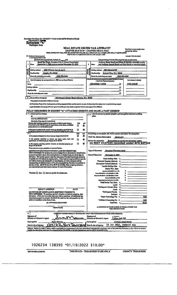 | Mailing Address: | 46 VILLAGE WAY UNIT 65173 PORT LUDLOW, WA 98365-9762 | % Ownership: | 100.0000000000% |
