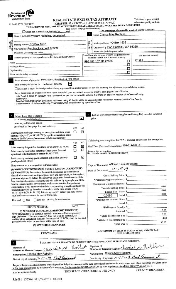 | Property ID: | 40569 | Abbreviated Legal Description: | PORT LUDLOW NO. 2 AREA 3 LOT 117 |
