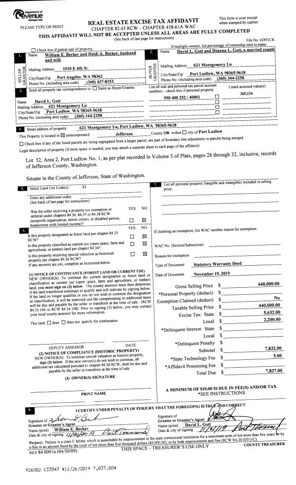 | Mailing Address: | 170 PIONEER DR PORT LUDLOW, WA 98365 | % Ownership: | 100.0000000000% |