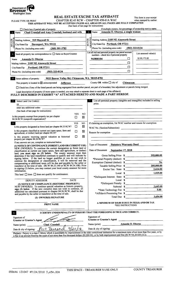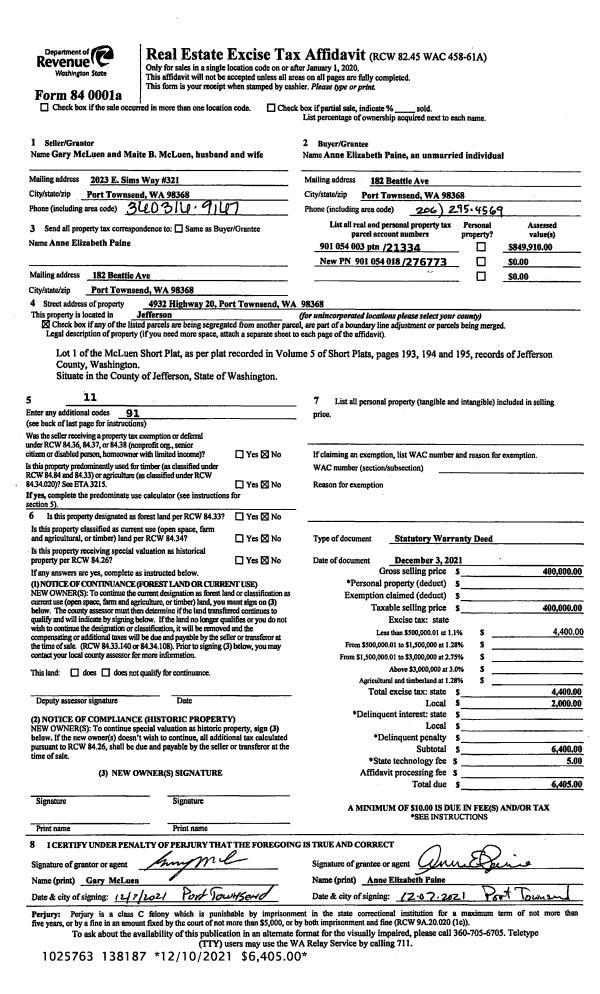 | Mailing Address: | PO BOX 1204 PORT HADLOCK, WA 98339-1204 | % Ownership: | 100.0000000000% |
