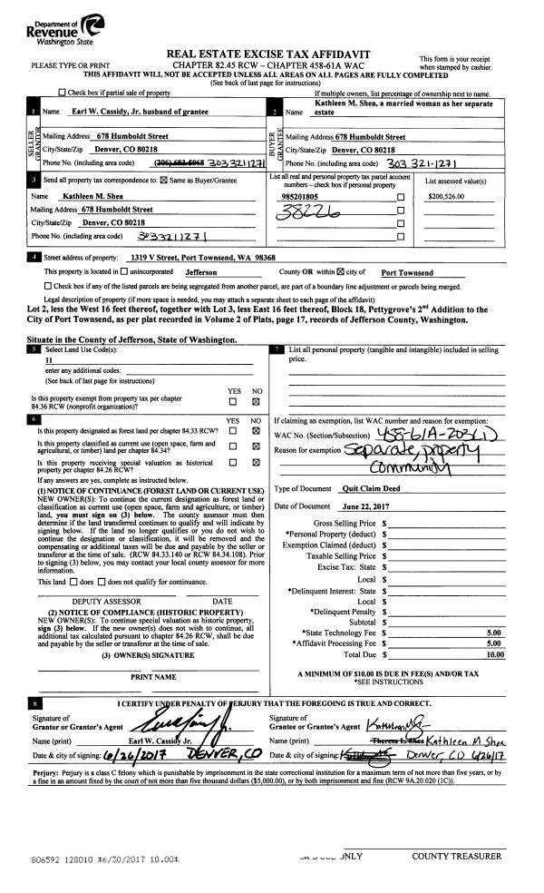 | 5 | 11/30/2012 | SWD | Statutory Warranty Deed | DIANE SPROCH WILKERSON | DIANE L SPROCH TRUST | | | | 118750 | |
