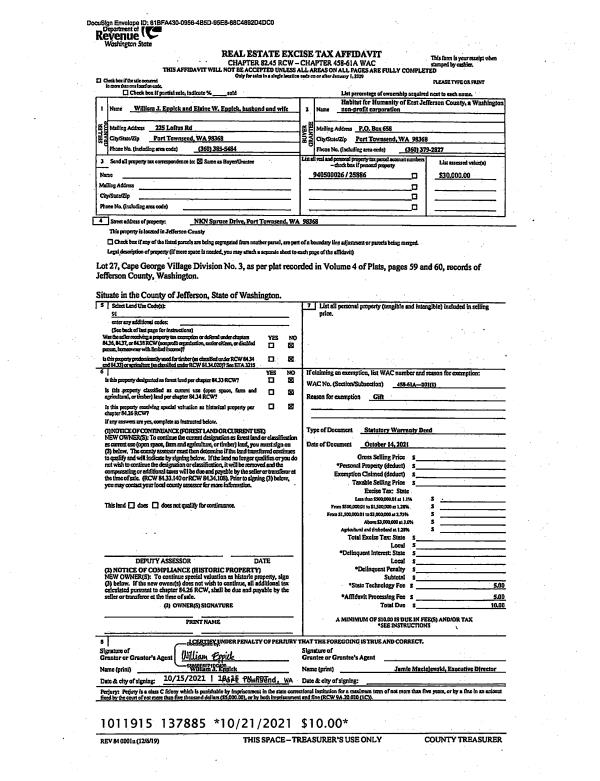 | Property ID: | 40643 | Abbreviated Legal Description: | PORT LUDLOW NO. 2 AREA 3 LOT 192 |