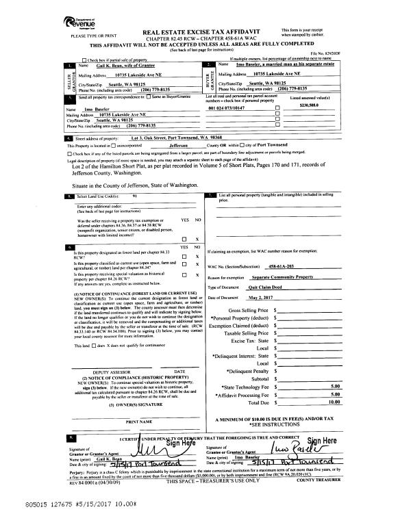 | 3 | 08/24/2017 | QCD | Quit Claim Deed | WENDELL DOWLING | DOWLING FAMILY TRUST | | | | 128412 | |