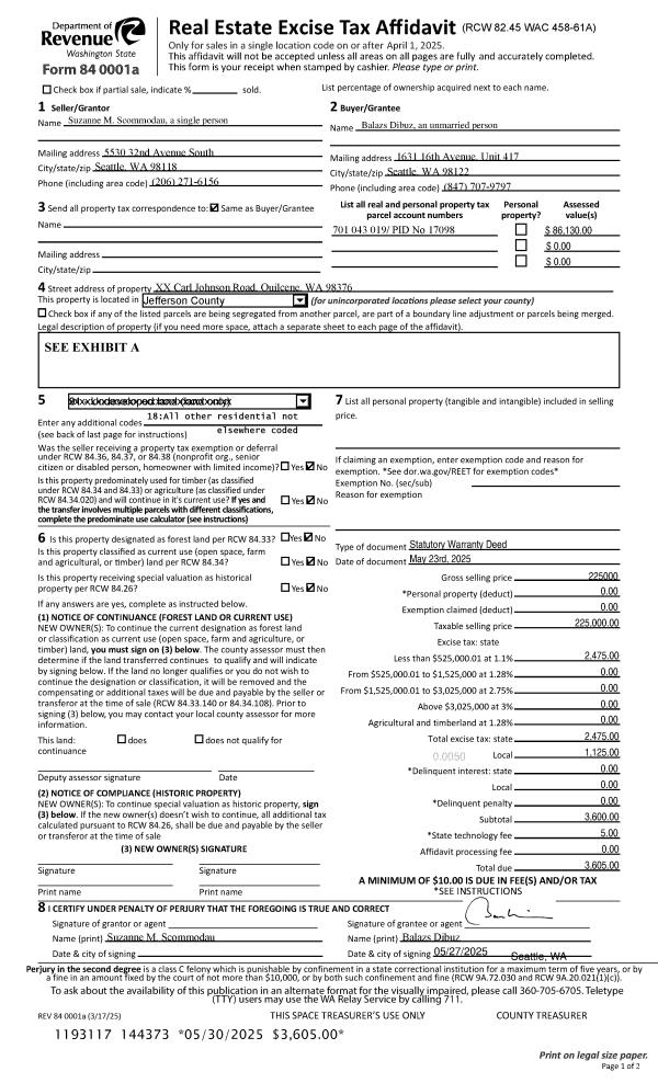 | Mailing Address: | 84 SCHOONER LN PORT LUDLOW, WA 98365-9710 | % Ownership: | 100.0000000000% |