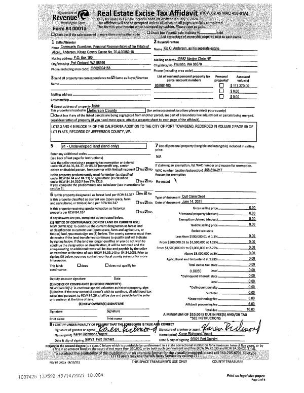 | 2 | 06/19/2017 | SWD | Statutory Warranty Deed | BERIT KOLTVEIT | STONE HAMMOND INTER VIVOS TRUST | | | $235,000.00 | 128006 | |