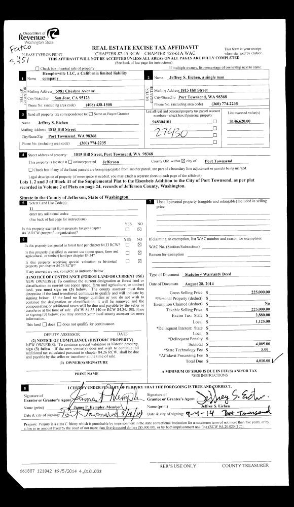 | 3 | 08/05/2015 | SWD | Statutory Warranty Deed | EDWIN L WILKERSON | ROBERT & BEVERLY STERN | | | $369,000.00 | 123775 | |
