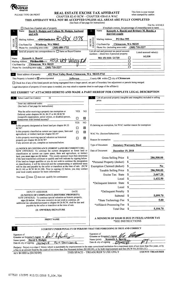 | Mailing Address: | 325 33RD ST PORT TOWNSEND, WA 98368-5023 | % Ownership: | 100.0000000000% |